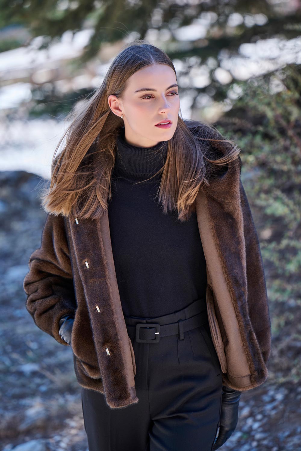 • CROPPED FAUX FUR 2225501 CHOCOLATE