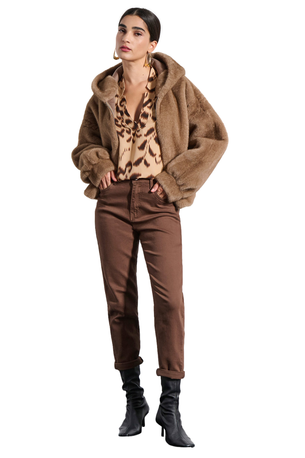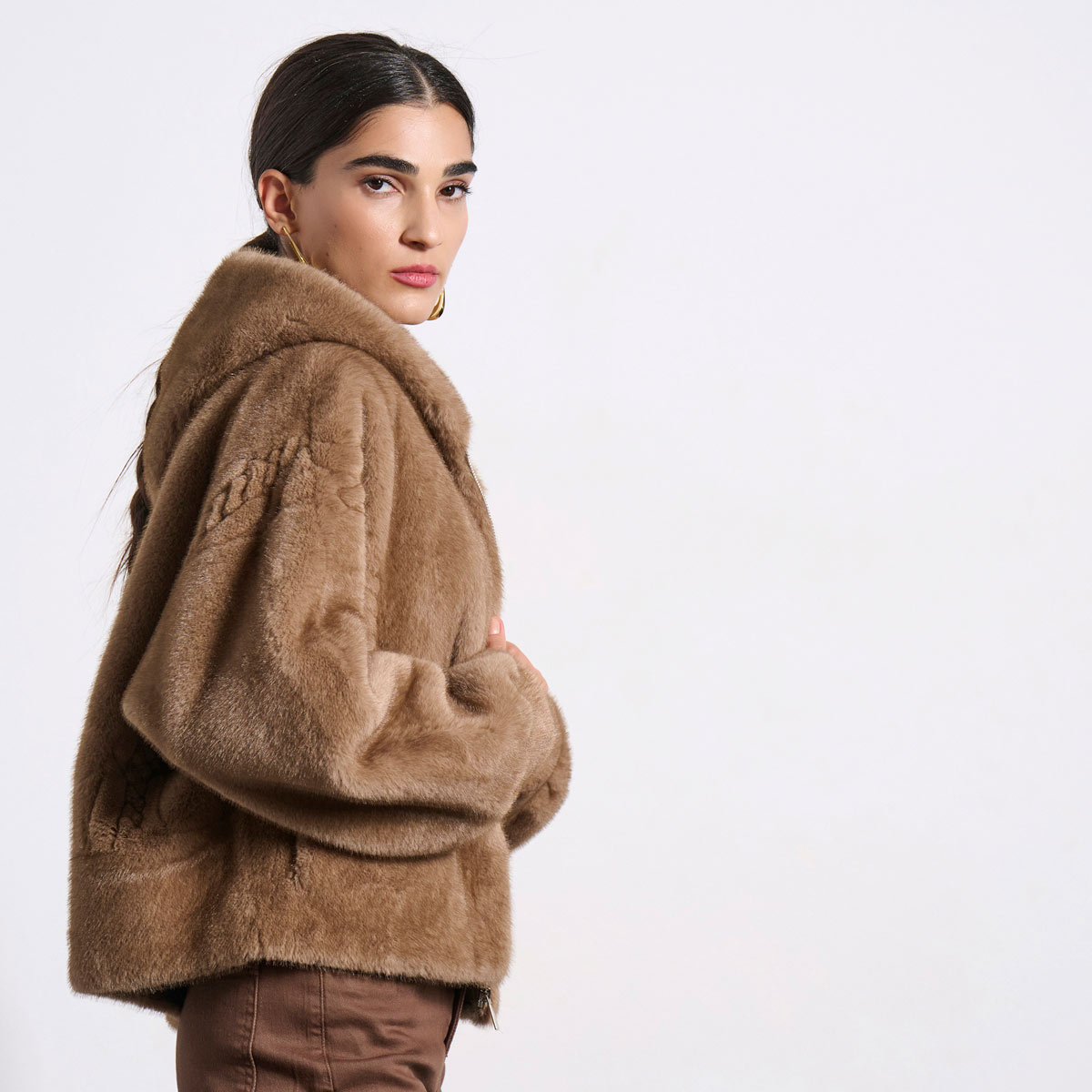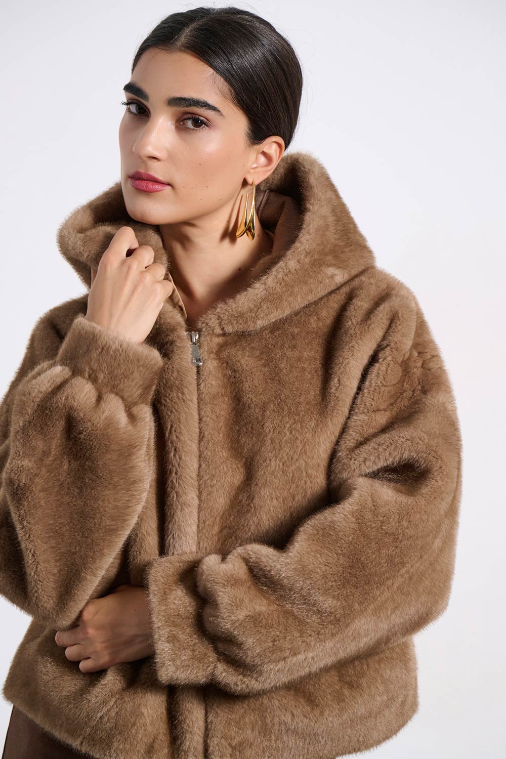 CROPPED FAUX FUR 2225501 CHOCOLATE