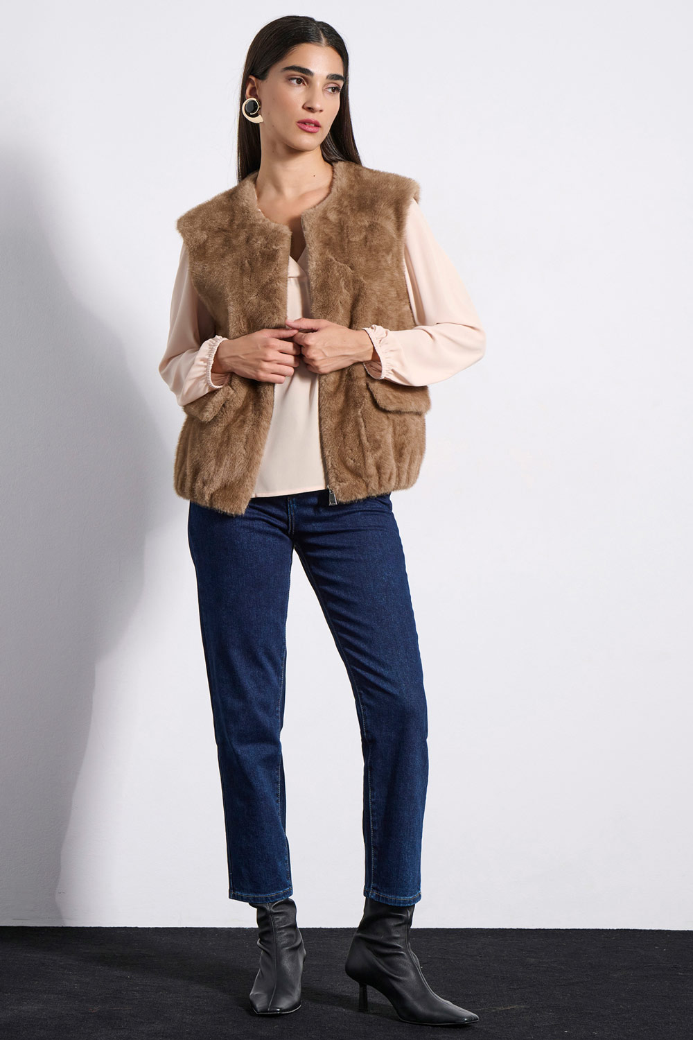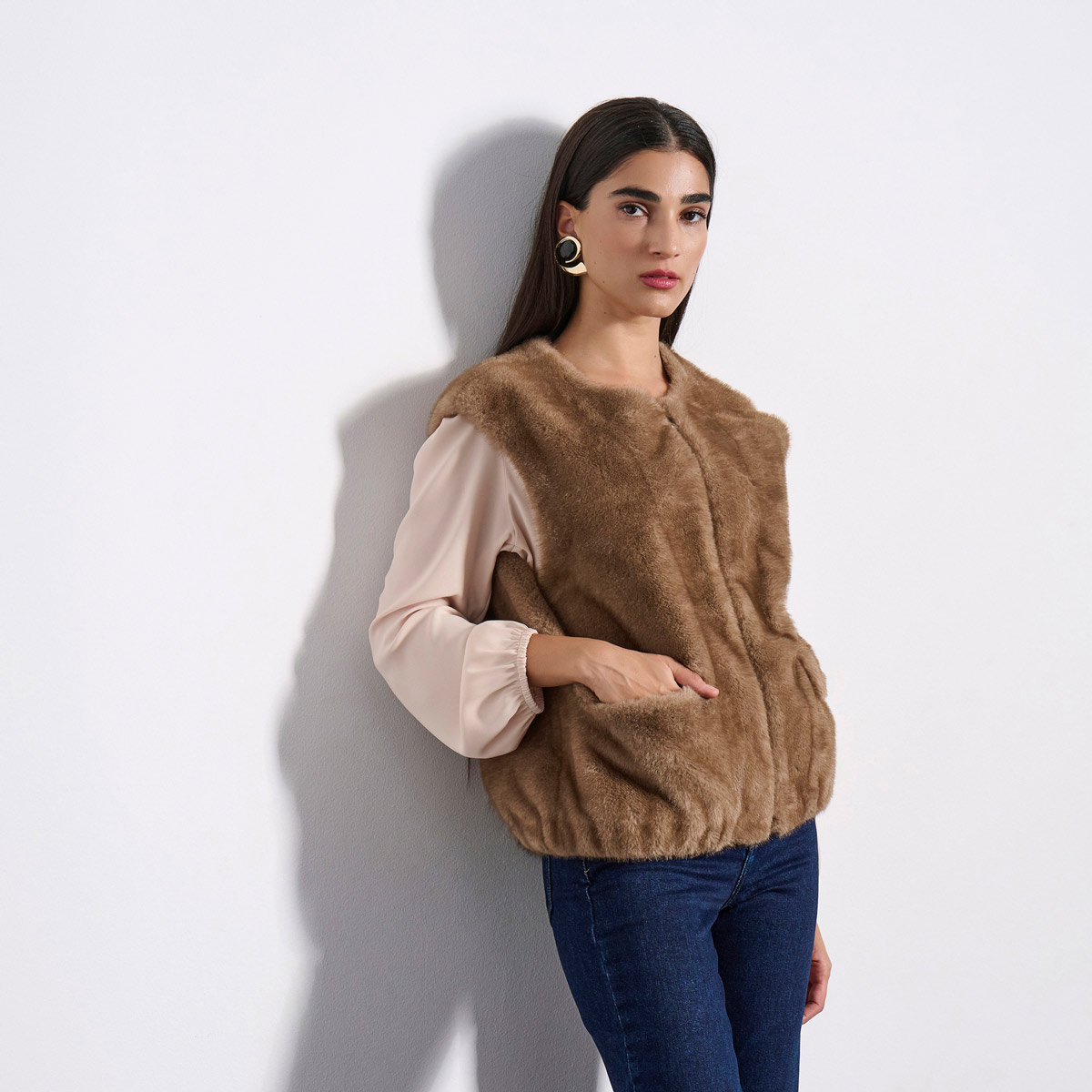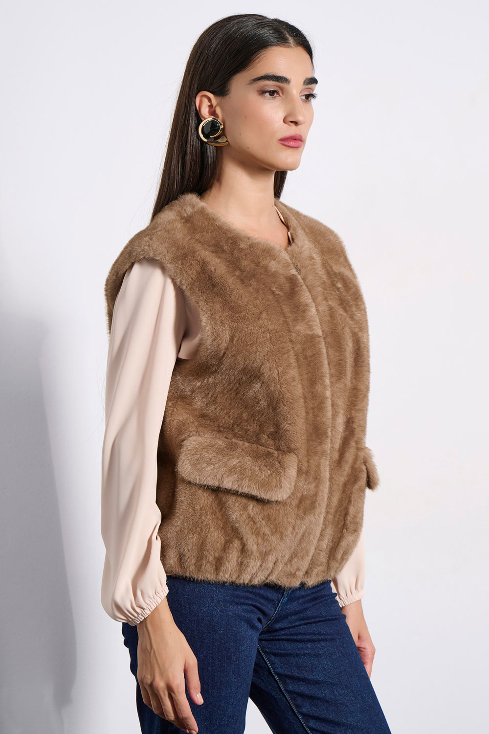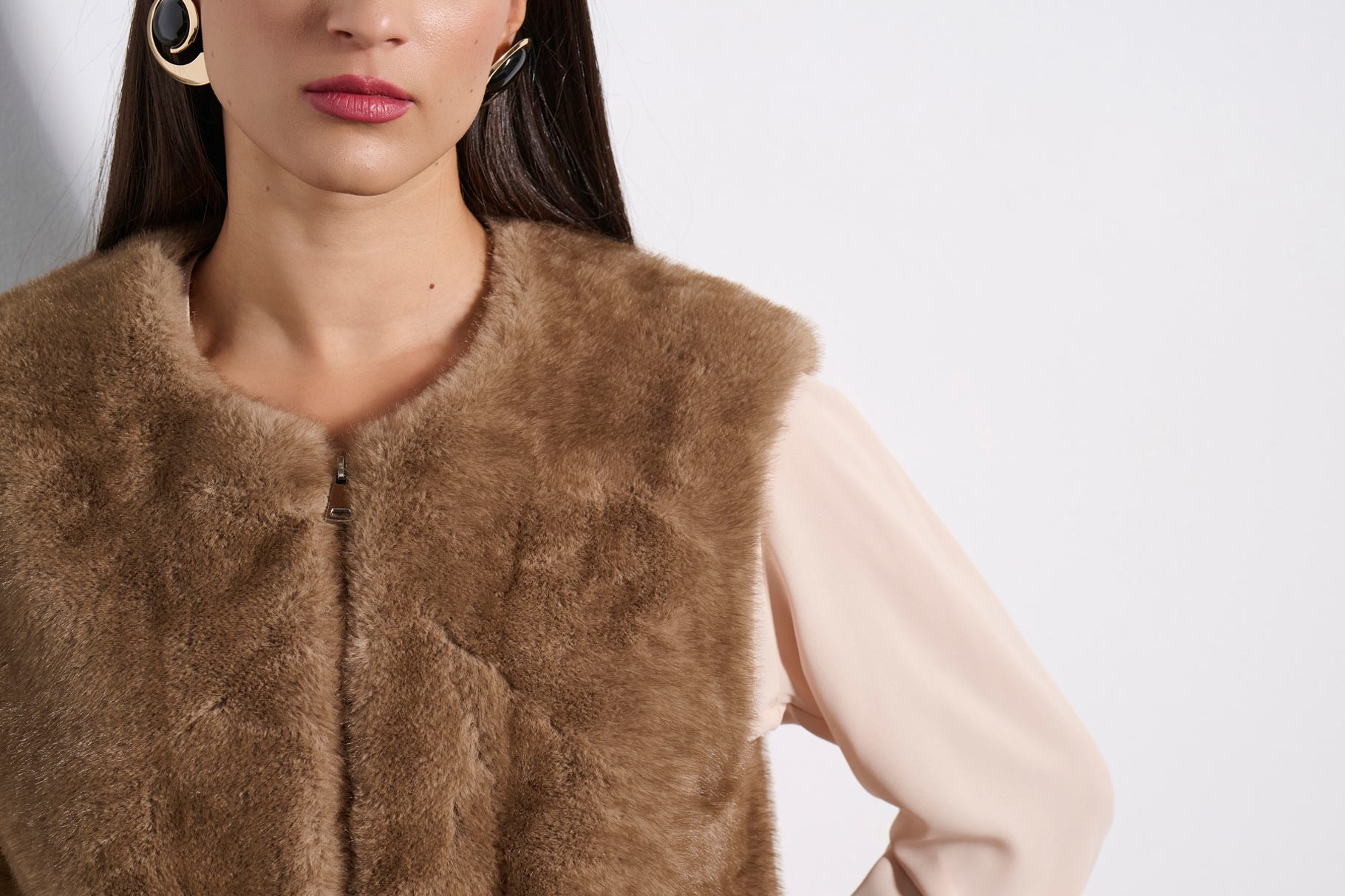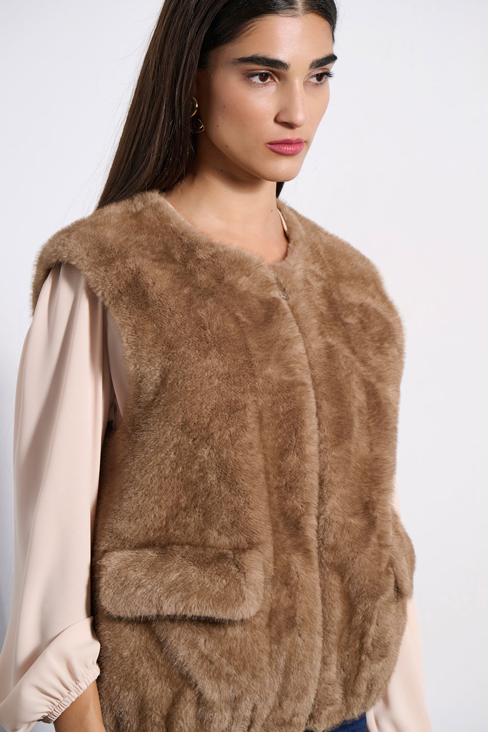 CROPPED FAUX FUR 2225501 CHOCOLATE