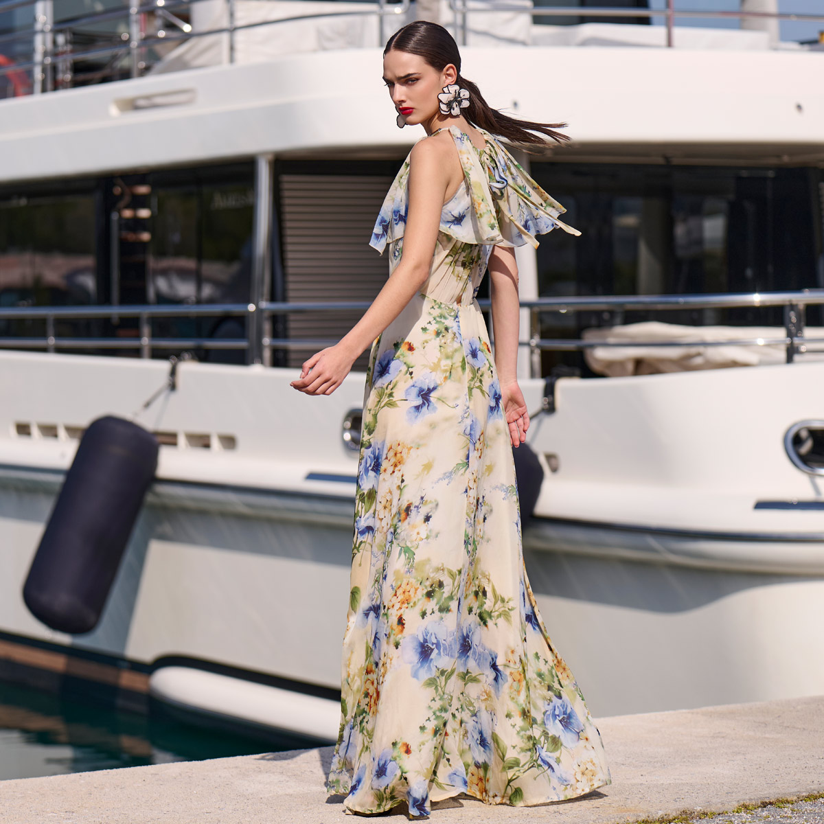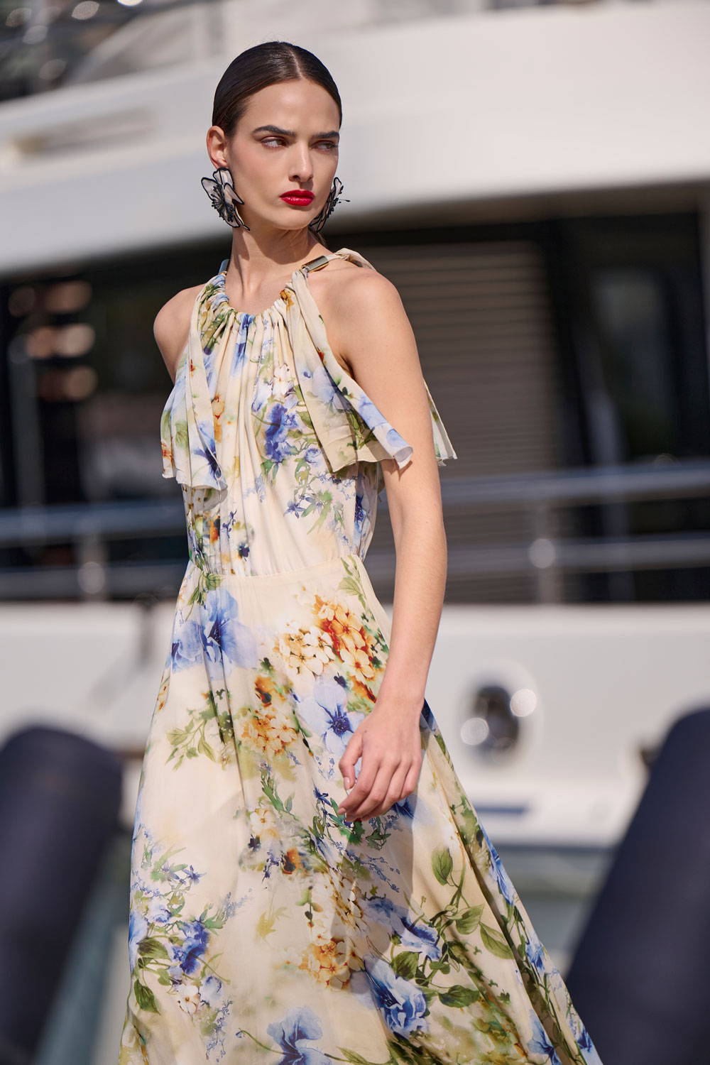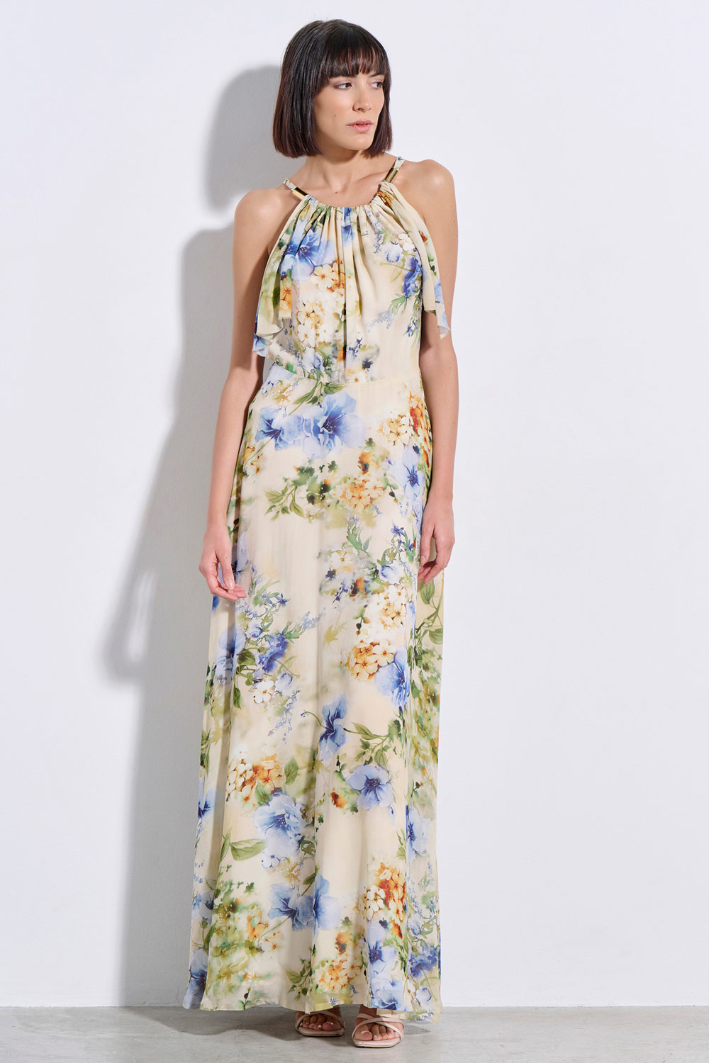 • GATHERED NECKLINE EMELLISHED WITH METAL ACCENTS