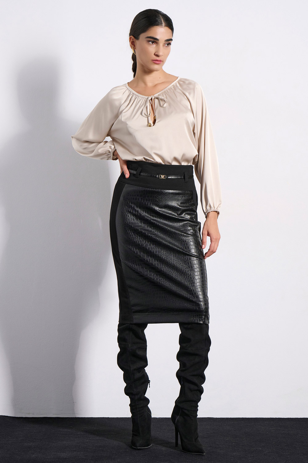 • BELT  MADE OF SYNTHETIC LEATHER WITH CROCK PATTERN AND BUCKLE
