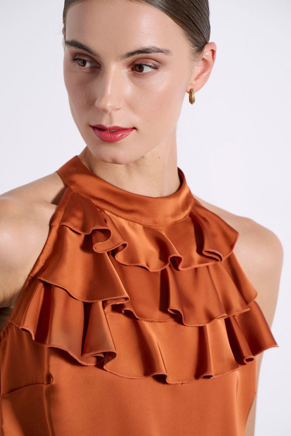 • RUFFLES UNDER THE NECKLINE AT THE FRONT