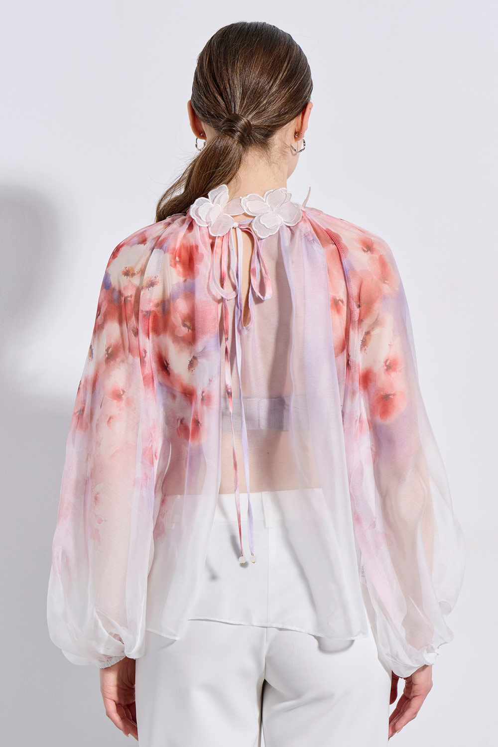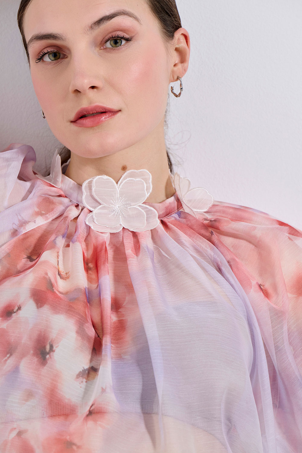 • "V" NECKLINE WITH DECORATIVE FLOWERS
