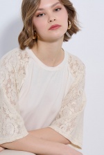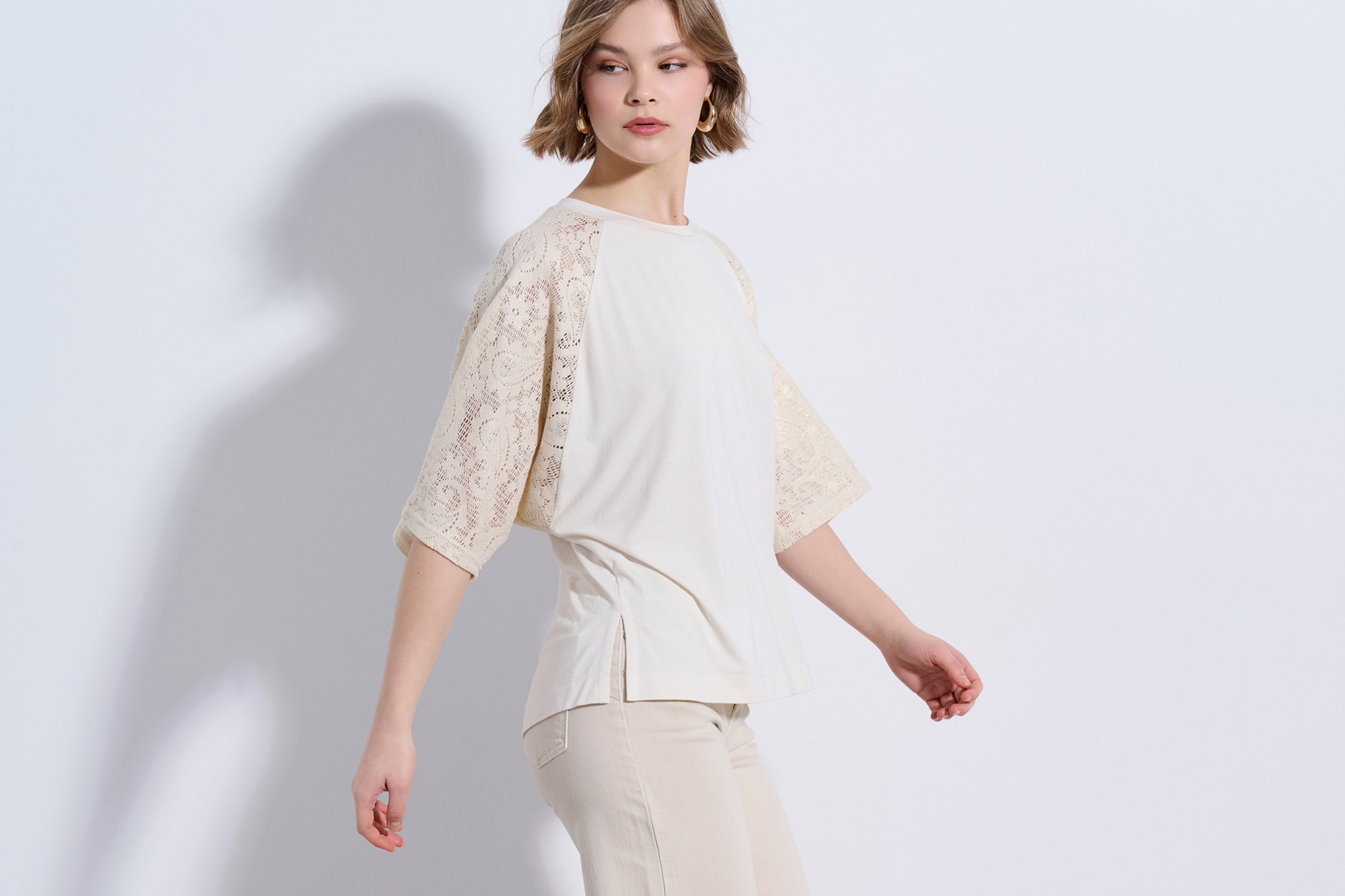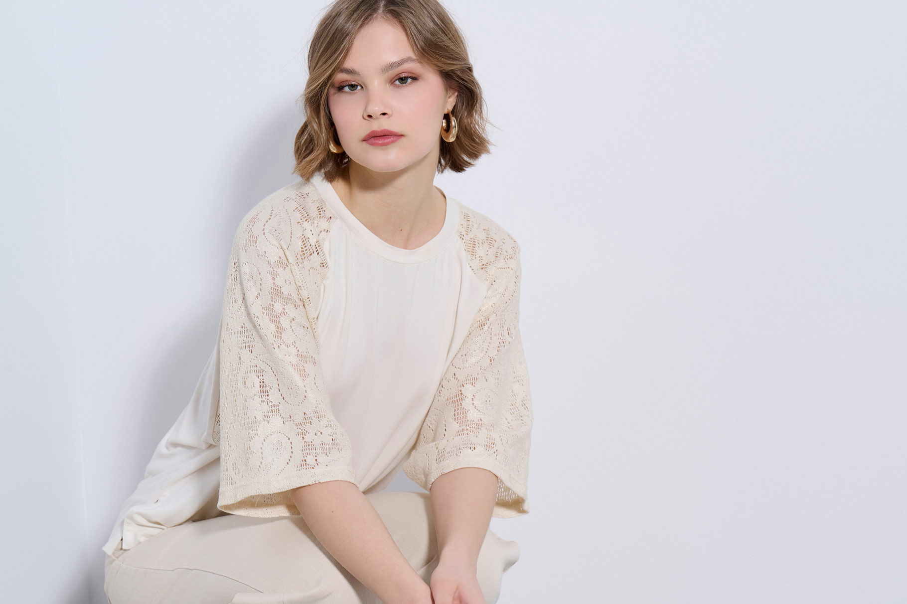 • SLEEVES: 50% COTTON 50% RECYCLED POLYESTER - BODY: 95% BAMBOO 5% ELASTAN