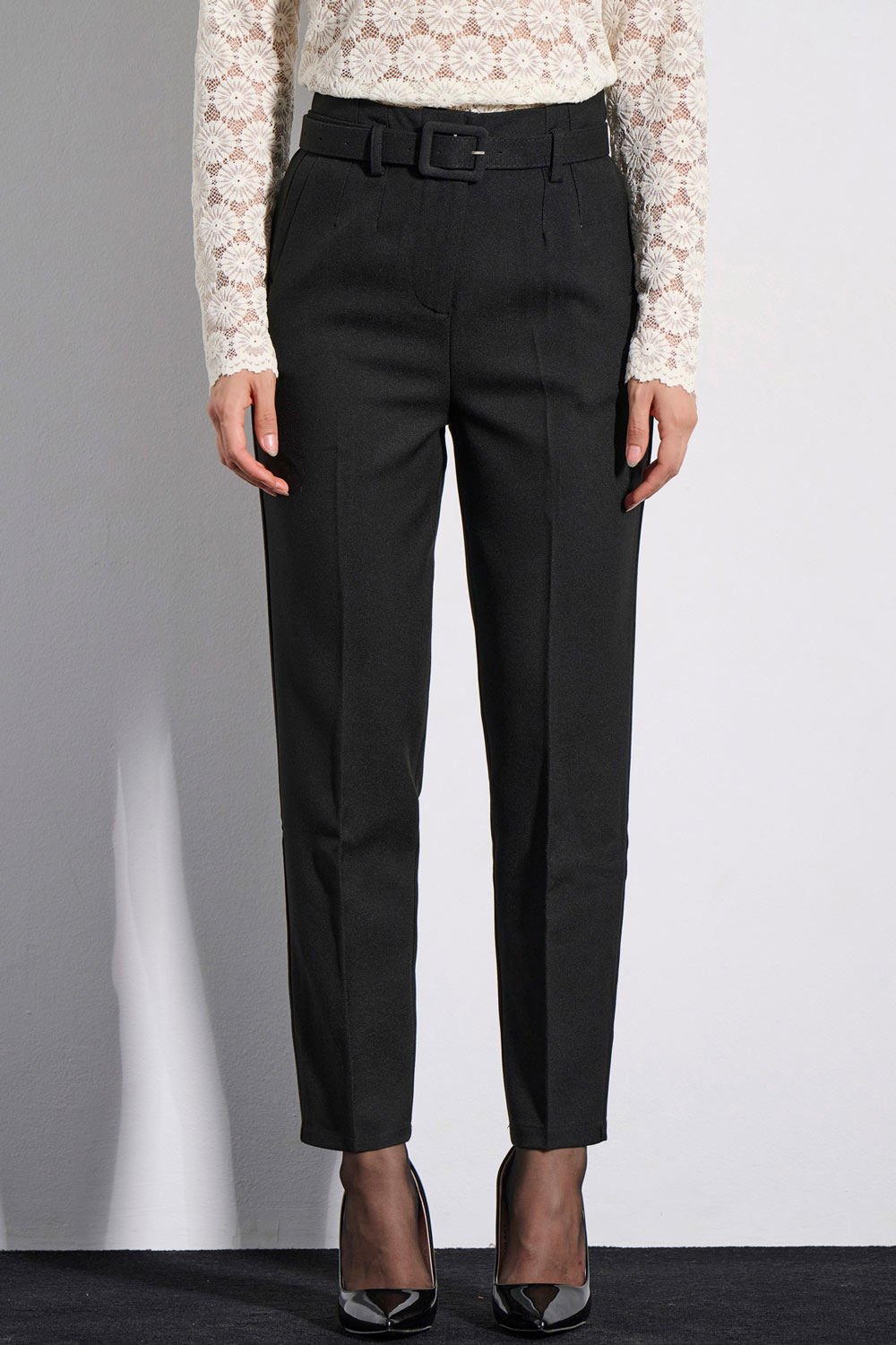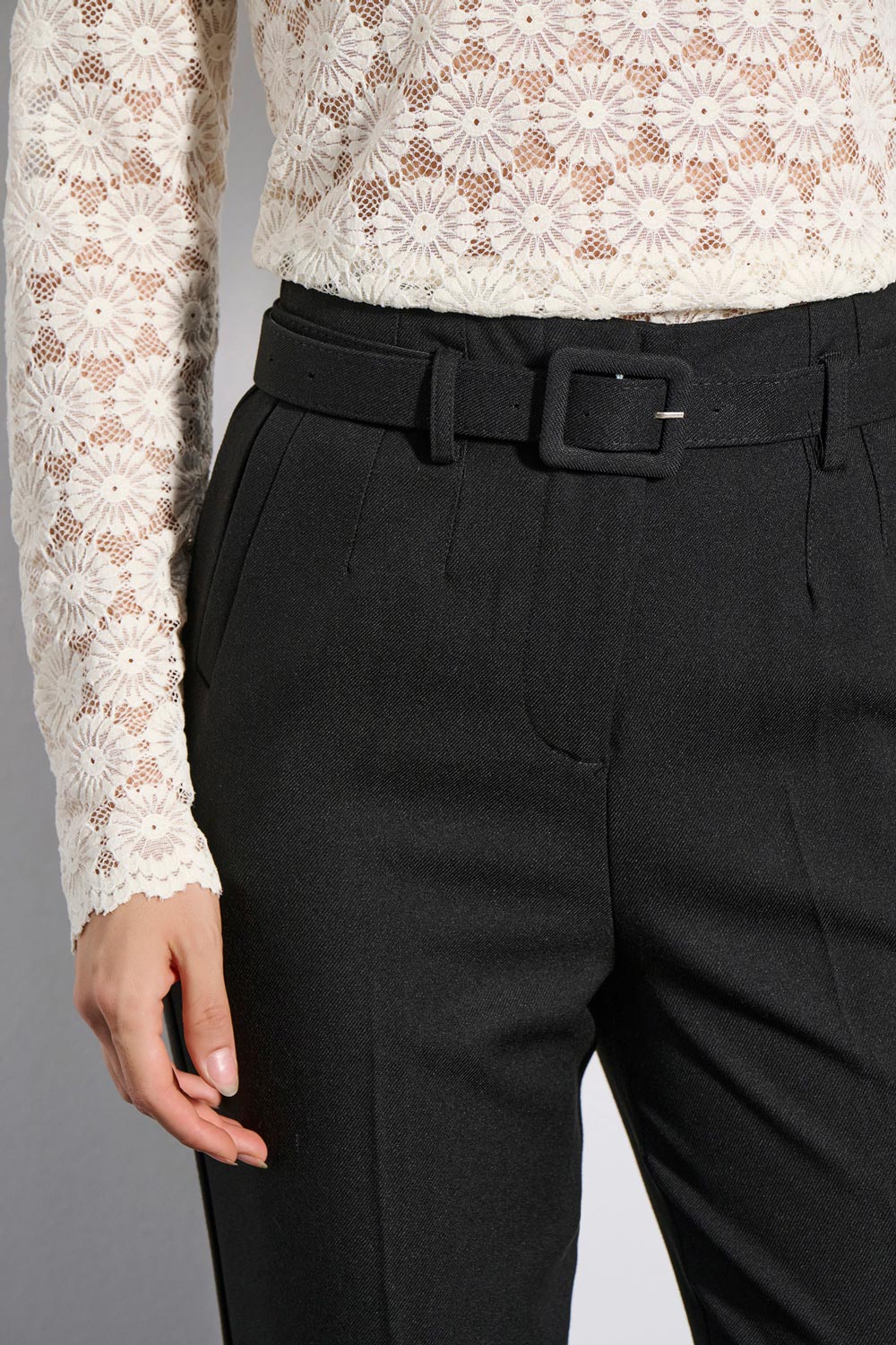 • BELT FROM THE SAME FABRIC WITH BACKLE