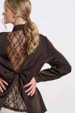 • DOUBLE LAYERED BACK WITH LACE AND OPEN FABRIC THAT CREATES A BOW IN THE MIDDLE